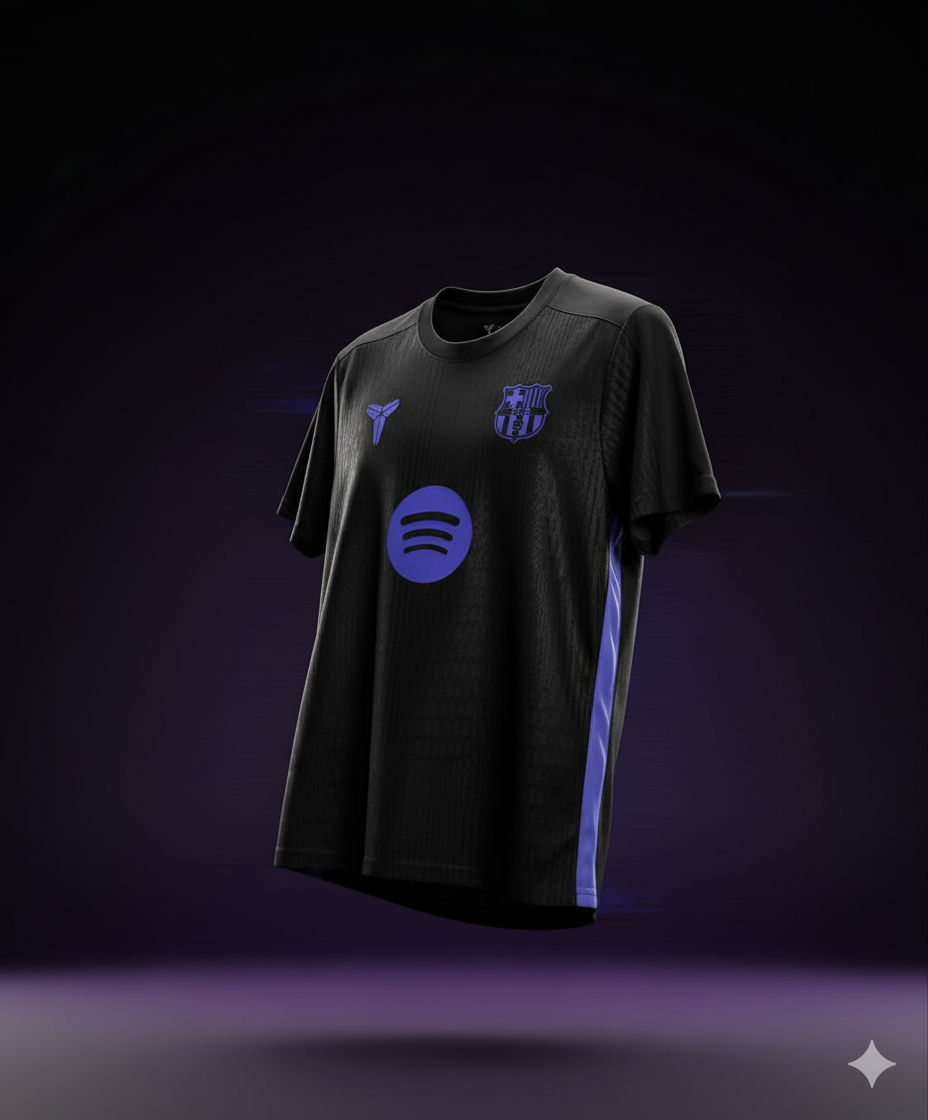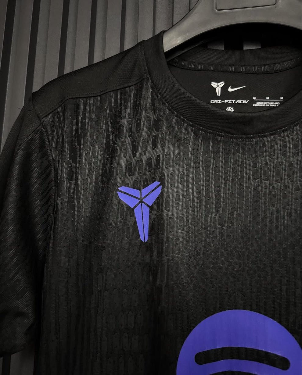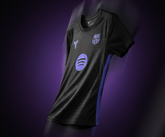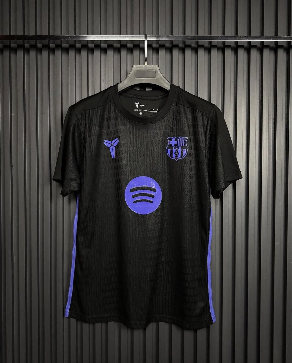 The FC Barcelona x Kobe Bryant Pre-Match Jersey (Player Version) is a special edition jersey that blends football and basketball inspiration. It features a sleek, modern design with bold colors and subtle Kobe-themed accents, paying tribute to the legendary player. The jersey is made from lightweight, breathable fabric, designed to keep players comfortable during warm-ups. Its tailored fit follows the athlete’s body for unrestricted movement, while the club crest and sponsor logos are integrated cleanly into the design. Details on the sleeves and collar add a stylish touch, making it a unique piece that stands out both on and off the pitch.