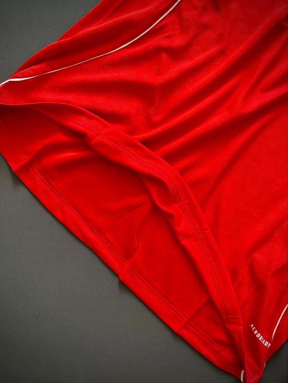 The official Liverpool FC crest is displayed on the chest, symbolizing the team’s history, passion, and determination. The matching shorts complete the full home look, offering a comfortable fit and authentic style. This set is perfect for fans who want to show their support for Liverpool and be part of the 2025/26 season in true Reds fashion.