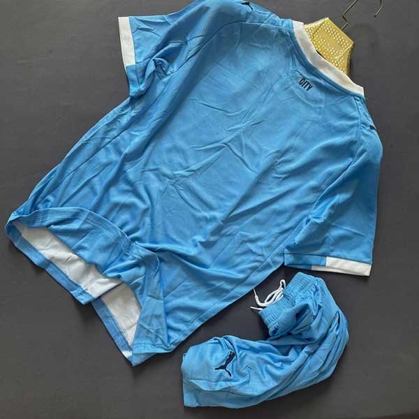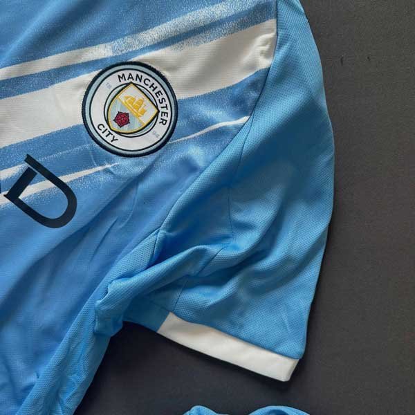 The Manchester City 2025/26 Home Set (With Shorts) reflects the club’s modern style and winning attitude. Designed in the traditional sky blue color, this season’s kit brings a fresh and clean look that represents the pride of Manchester. Made from lightweight, breathable fabric, it ensures comfort whether you’re playing, training, or supporting your team from the stands.