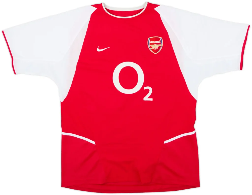 This kit introduced the O2 sponsor and modern styling under Nike. The red body, white sleeves, and balanced layout gave it a sleek, powerful look. Henry was unstoppable during this time, scoring volleys, chips, and long-range screamers. Fans loved the fit and colour tones. This kit brings back memories of beautiful football and dominance under Arsène Wenger.